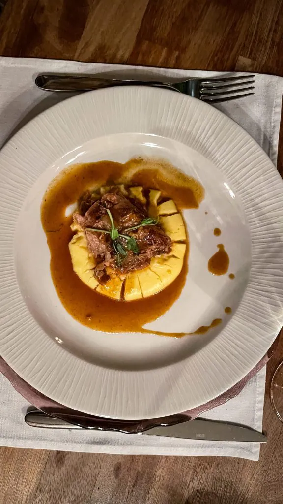 Nakon toga su stigli Ravioli sa jastogom u ribljoj čorbi, da bi se nadovezali na Brancin iz Kanaria, žele od graška i vićentinski sos. Za kraj je stigao i Teleći osebuko na kremi od kukuruznog brašna, a onda i desert – Tiramisu Debora Masari by Ignio Masari Alta Pasricceria.