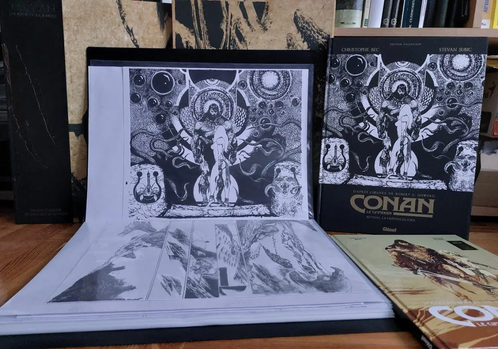 Strip-album Konan od Kimerije: Ksutal, grad sumraka našao se u Srbiji u prodaji početkom godine u izdanju zemunskog Makonda. Ovo luksuzno domaće izdanje donosi šezdeset tabli u koloru (strip je obojila Đulija Brusko), kao i dodatni materijal u vidu pogovora Patrisa Luinea, ilustracija Lija Bermeha, Bruna Brindizija i Dena Panosijana, kao i crno-bele galerije sa radovima Stevana Subića koja ukazuje da bi ova poseta Ksutalu možda bila čak i efektnija da je boja izostala. Subić je rado pristao da odgovori na moja pitanja u vezi sa ovim novim izdanjem čiji je prvi tiraž od 500 primeraka već rasprodat.