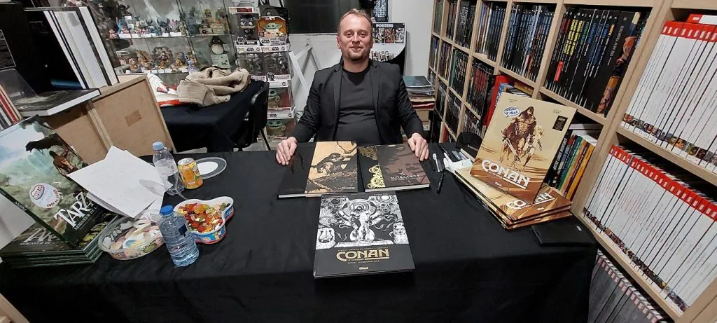 „Pre toga sam već bio u neformalnim kontaktima sa nekolicinom autora iz Francuske, tako da se ništa nije odigralo preko noći. Na francuskoj strip sceni debitovao sam 2015. godine kada je objavljen deseti album iz vrlo uspešne serije Čovek godine koji sam nacrtao za izdavačku kuću Delkur. Do danas bez pauza u radu objavljujem svoje naslove na franko-belgijskom tržištu, a poslednji naslovi u nizu su Tarzan i Konan. Ponudu da radim na novom albumu za Glenu i crtam Hauardovog Konana dobio sam početkom 2018. godine, kada me kontaktirao čuveni strip-autor Žan-Davida Morvana. Ostalo je sada već, čini se, istorija.“