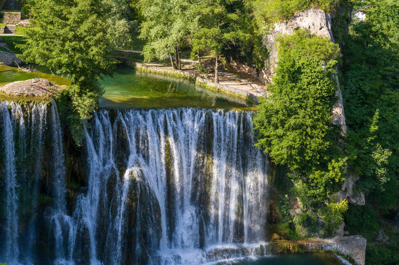 Vodopad reke Plive u Jajcu visok je 20 metara, a najbolje ga je razgledati iz blizine, s platoa na kojem možete osetiti prskanje njegovih kapljica.
