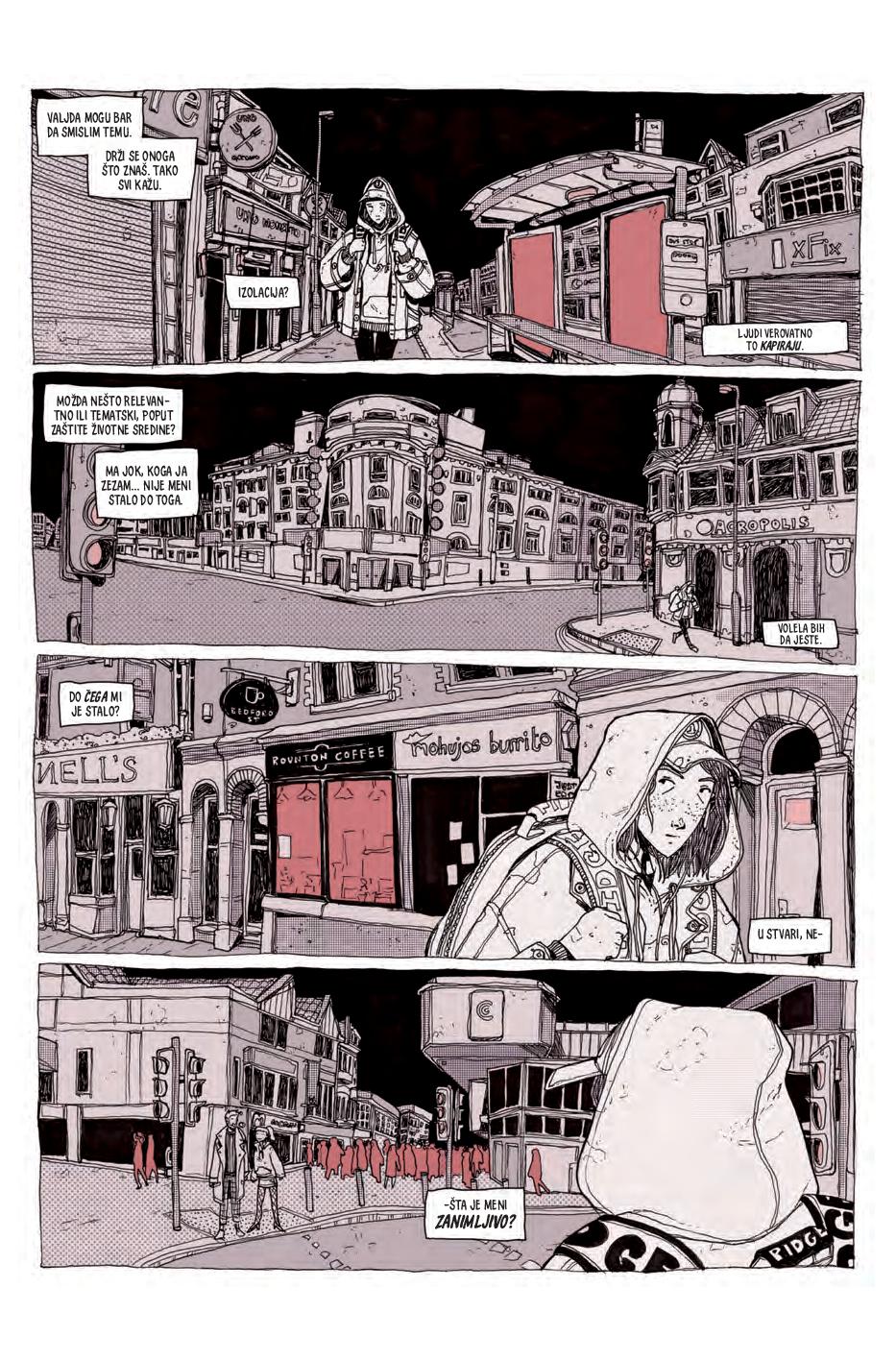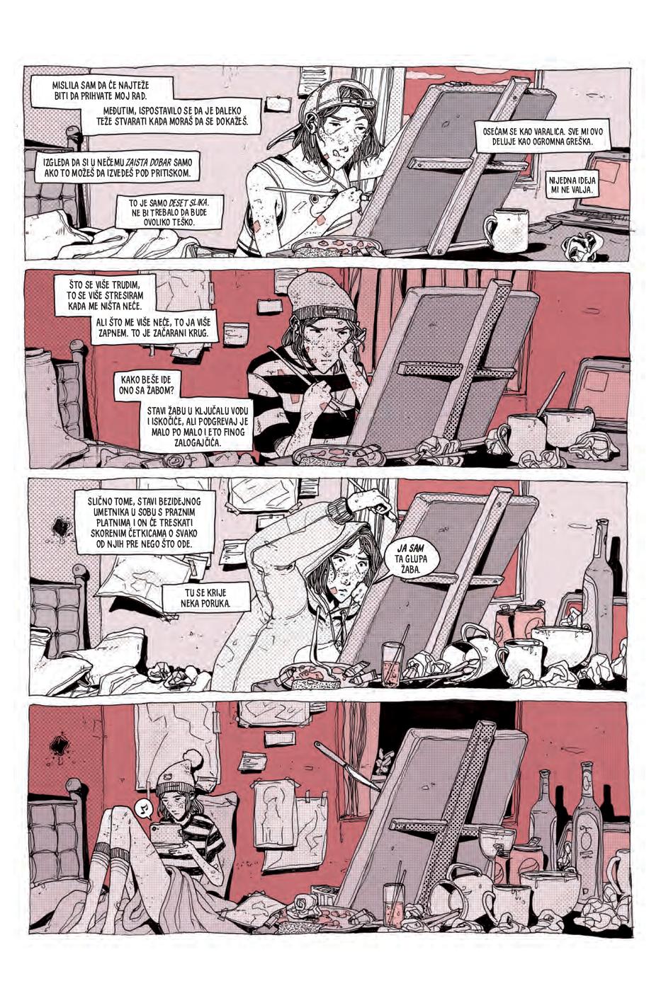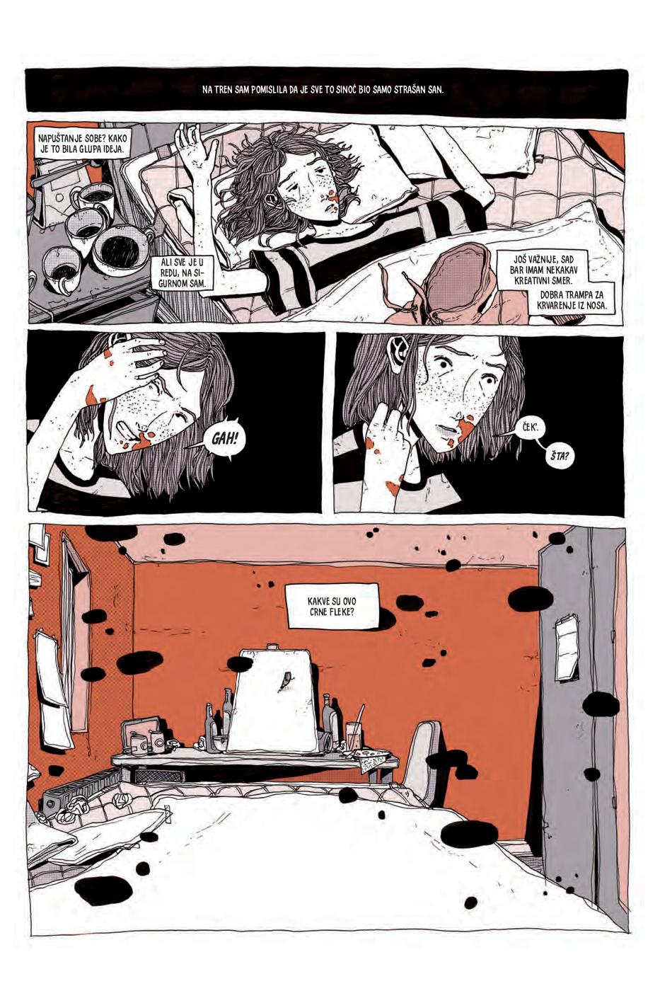 Kod nje nema preopterećenih balončića sa dijalozima, iako su tu upečatljive rečenice koje vas s vremena na vreme seku pravo kroz stomak.