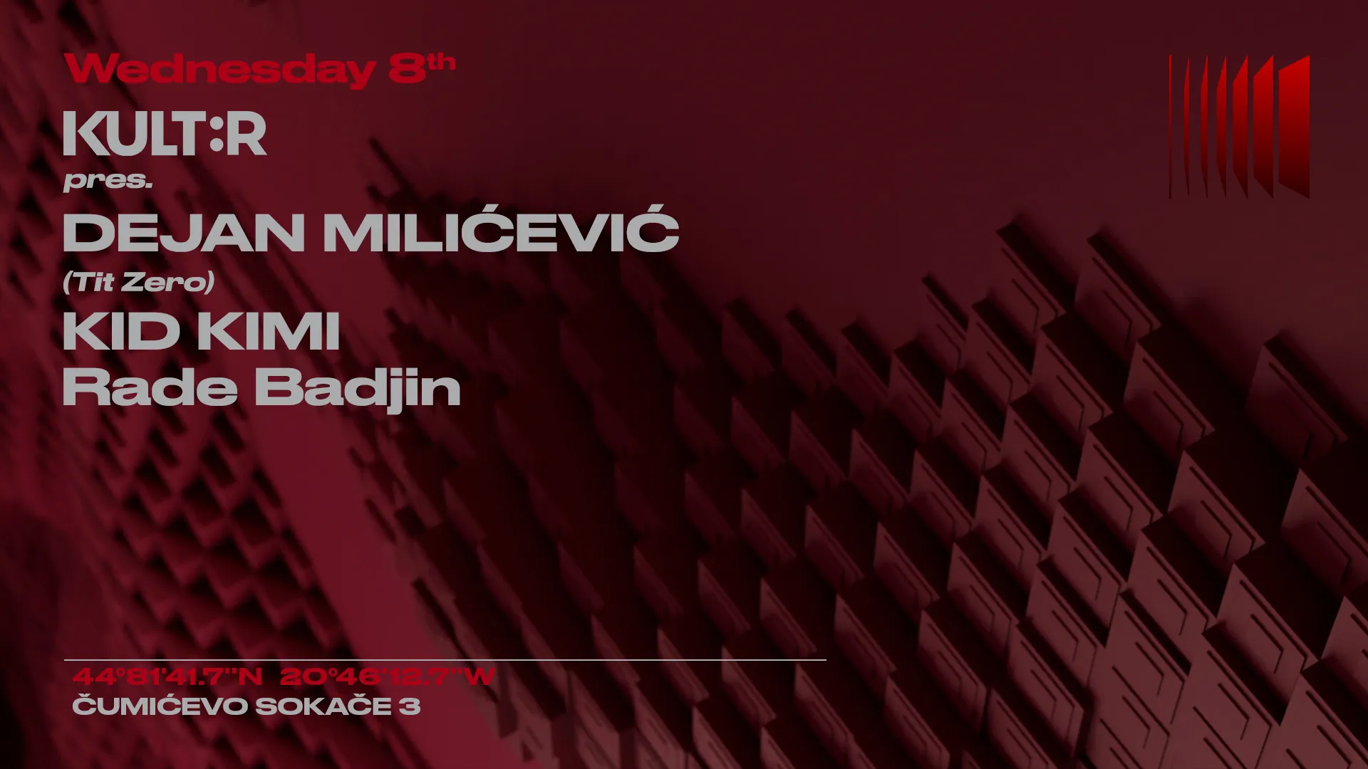 U sredu 8. novembra na prvoj KULT:R žurci ove sezone DJ pult zauzeće jedan od pionira beogradske scene Dejan Milićević, Kid Kimi i Rade Badjin. Dejan Milićević jedan je od najboljih regionalnih DJ-eva i producenata koji već skoro 30 godina uspešno vlada elektronskom scenom. Njegov stil predstavlja fuziju house-a i techna, u kojoj se prepliću […]