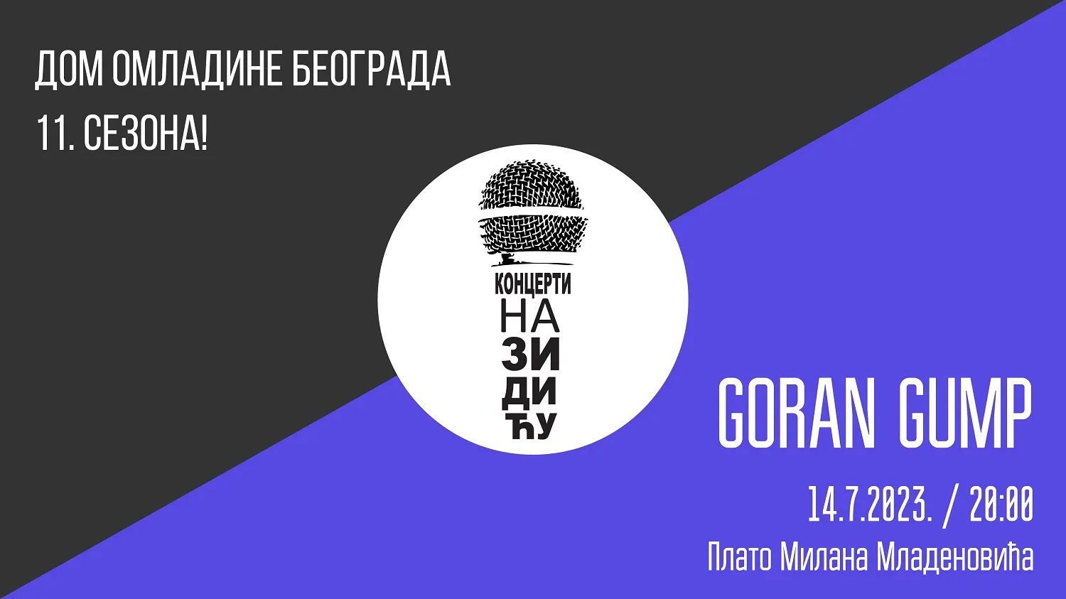 U petak, 14. jula, u 20h u okviru Koncerata na Zidiću na Platou Milana Mladenovića nastupiće Goran Gump. Goran Gump (Goran Milojević) je svestrani muzičar koji je odrastao u Herceg Novom, a živi i stvara na Novom Beogradu. Za sebe kaže da muziku oseća već 20 godina, dok mu je život hobi, a zaljubljenost i […]